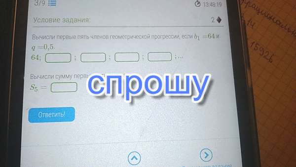 Вычисли первые пять чисел геометрической прогрессии, если b1 = 64и q = 0,5.