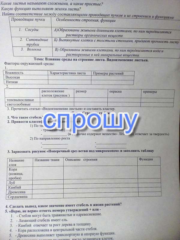 Заполните таблицу таблицу транспорт веществ у высших растений