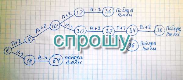 10: у Вали: П*3=30 В+2=32 П+2=34 В+2=36 - Победа Вали