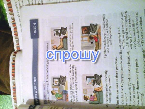 4. Я предпочитаю смотреть программы викторины и мультфильмы о Бетмене и Супермене .
