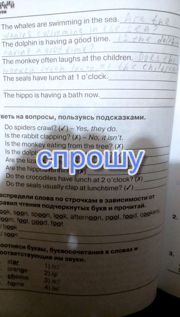 Ответь на вопросы, пользуясь подсказками. Is the monkey eating from the tree?