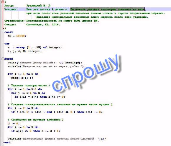 for i := 2 to N do if ( a[i-1] gt; a[i] ) and ( a[i] lt;gt; 0 ) then a[i] := 0;