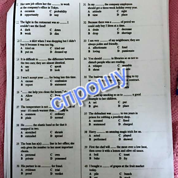 Через запятую ответы: A , B , A , D , B , B , A , A , B , C , A , C , B , C , C , B , A , D , D , B .