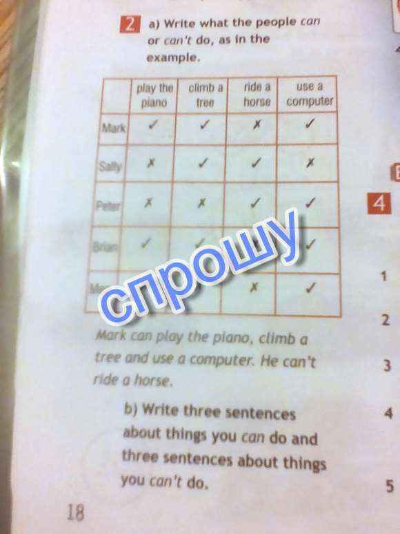 Peter cant play the piano and climb a tree. He can ride a horse and use a computer.