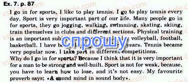 Я ходжу на спорт, я люблю грати в тенніс.я ходжу грати в теніс кожен день.спорт важлива частина нашої жізні.многі люди йдуть на спорт, вони бігають, ходять, плавають, катаються на скейборд на лижах, тренують себе в різних клубах і секціях.фізіческіе тренування це важливий предмет в школі. учні грають у волейбол футбол баскетбол.я граю в теніс 5 лет.тенніс ставати популярнішими зараз.чому я ходжу на спорт.потому що я думаю це грає важливу роль в житті чоловіка, щоб стати сильніше і мати гарне телосложеніе.спорт не легка річ, тому що ти вчишся програвати і це не легко.