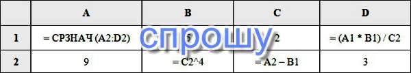 Дан фрагмент электронной таблицы. Найди число, которое будет отображаться в ячейке D1. (СРЗНАЧ – среднее арифметическое чисел в указанном диапазоне ячеек)