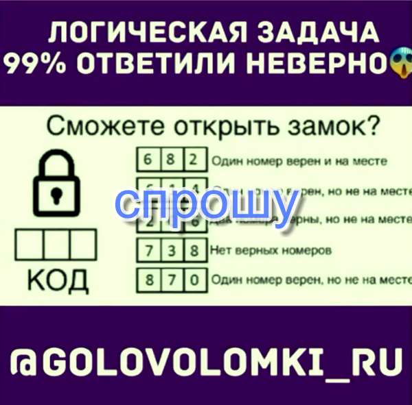 Из первого кода правильно получается цифра 2 (так как 8 из 4 не правильно, а шесть есть и в 1, и во втором на одинаковых местах). Из второго цифра 4. И из третьего цифра 3.