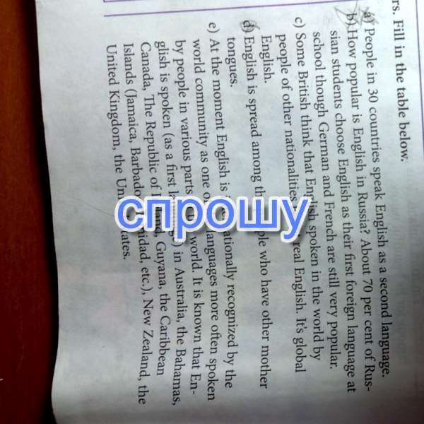 Заполните в таблице ниже. Люди в 30 странах говорят на английском языке в качестве второго языка. Насколько популярен английский в России Около 70 процентов российских студентов выбирают английский язык в качестве первого иностранного языка в школе, хотя немецкий и французский языки по-прежнему очень популярны