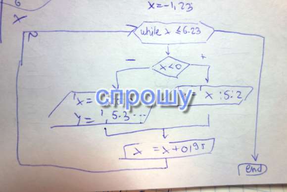 Writeln('X = ',x:5:2,', Y = ',5.3*sqrt(abs(x*x*x))+cos(ln(x)+12.6));