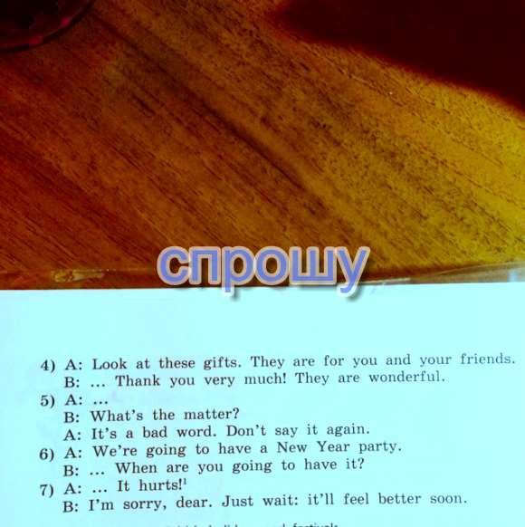B:Oh! Thank very much! They are wonderful. (Ох! Спасибо тебе большое! Они просто прекрасны.)