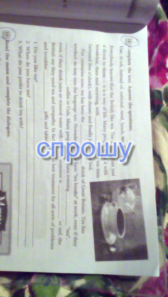 Каждый знает что англичане любят чай.Чай- это больше чем просто напиток ,для них способ жизни.Много людей пьют чай с завтраком когда наступает утро с (пропуск) в чайное время (в пять часов)с ужином и заканчивая перед сном. На протяжение века чай существовал (пропуск) напитком в Великобритании.