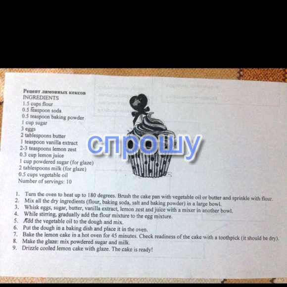 Ламбрекен ингредиенты 15 чашек 05 (АСП caspoon разрыхлитель я чашки сахара ванильный экстракт НС Леннон 03 Кубок (Пн сока л стакана сахарной пудры (для глазури) 2 ст. л. молоко (для глазури) 05 чашки овощей Количество порций: 10 он духовку нагреть до 180 градусов. Щетка кекса с растительным маслом или сливочным маслом и закрутить 2 смешайте все сухие ингредиенты (муку, соду, соль и разрыхлитель) ина большой миске. Взбейте яйца, сахар, а ванильный экстракт, лимонный сок и цедру миксером в другой миске при постоянном помешивании постепенно объявление в смесь муки к яичной смеси Добавить растительное масло в тесто и перемешайте. Выложить тесто в форму для выпечки и поместите его в духовку 7 выпекать лимонный пирог в горячей духовке в течение 45$ минут проверить готовность пирога зубочисткой (она должна быть сухой) приготовить глазурь: смешать) сахарной пудры и молока. Полить охлажденный лимонный торт с глазурью. Торт читать