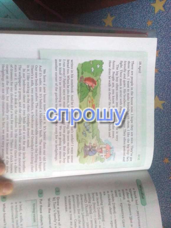 24) Сегодня отец прочитал в газете: Продажа, прекрасный дом в пригороде, большой сад, три спальни, в хорошем районе. 25) Это наш дом! 26) Мой отец знает адрес. 28) Я говорю вам мой отец умный и знает все. 29) Мы беспокоимся. 30) Кто здесь собирается жить 31) Любят ли они ежей