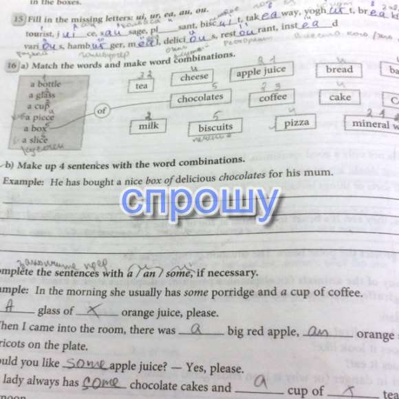 Номер 16 под b) make up 4 sentence with the word combinations. Плииииииз очень срочно