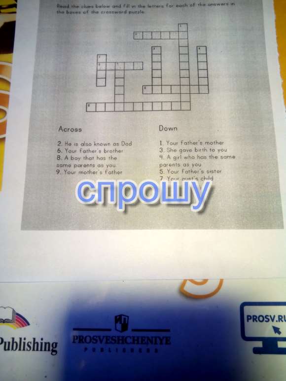 Read the clues below and fill In the letters for each of the answers In the boxes of the crossword puzzle.