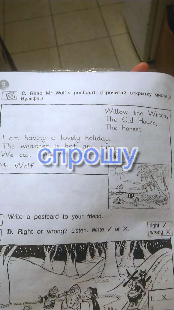 Read Mr Wolf' s postcard .