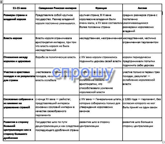 Заполните таблицу развитие Священной Римской империи Франции и Англии в 11-15 века