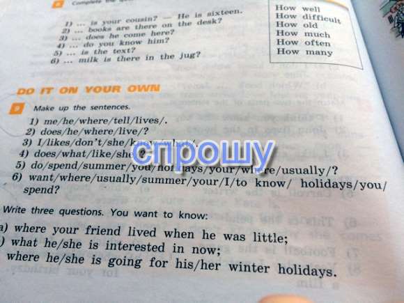 Помогите с английским!!Номер 9,нужно поставить данные слова в правильном порядке,так что бы получились предложения,мне нужно только 5 и 6