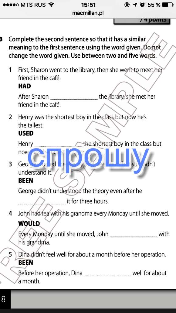 Нужно 5 типов вопросов к этому предложению (на английском )I
