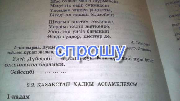 Сейсенбі-екінші күн.Ол күн маған қатты ұнайды,себебі сейсенбіде біз отбасымызбен қыдырамыз.