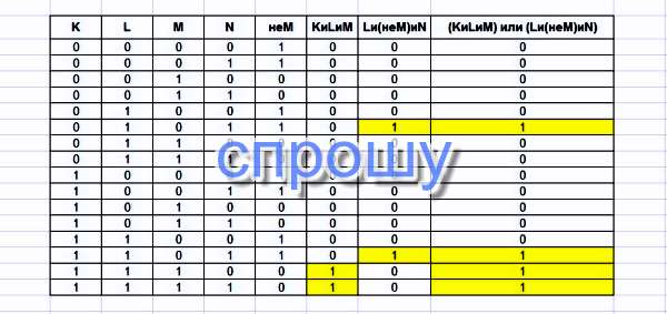 Где K, L, M, N - логические переменные?