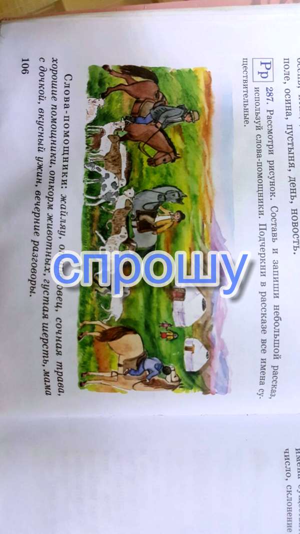 Малшылар малды жайлап жаттыр.Малдар таті(тати)шоп жеп жаттыр.Ана мен кыз малдарды калай жайлап жатыр көріп(корип)жаттыр.