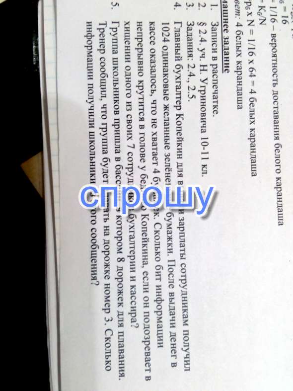 4. количество информации = log(2)8 = 3 бита