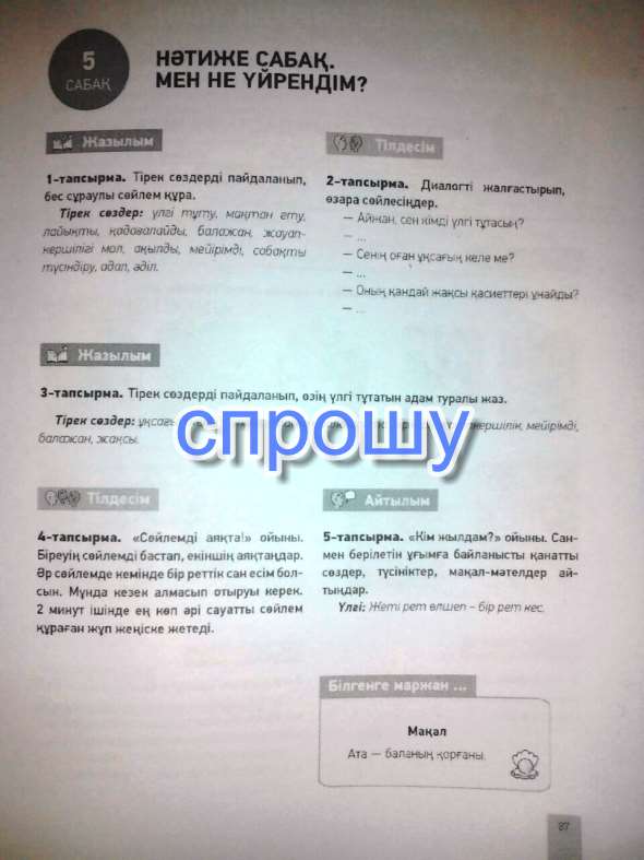 Сделать с 1-го по 5-е тапсырма или сделать хотя бы 1 задание