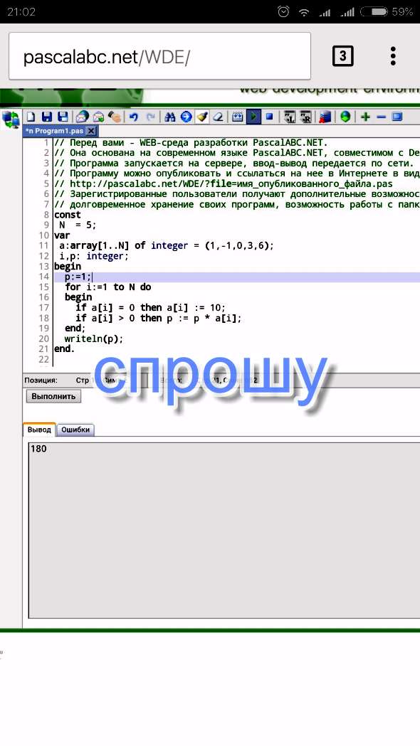 В массиве найти произведение положительных чисел массива, нулевые элементы заменить числом 10.