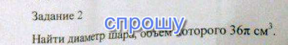 Найдите диаметр шара, объем которого 36 пи см кубе