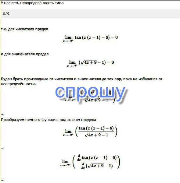 Lim tg(X^2-x-6)/(((4x+9)^1/2)-1)= [0]/[0] раскрыть неопределенность