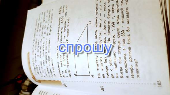 Вычисли площадь четырехугольника ABCD если ширина прямоугольника ABCD равна двум сантиметрам а длина 4 400 известно что площадь треугольника равна 6 сантиметров в квадрате.