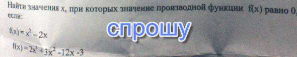 Найдите значение х, при котором значение производной функции f(x) равно 0, если 1) f(x) = x^2-2x 2) f(x) = 2x^3+3x^2-12x-3