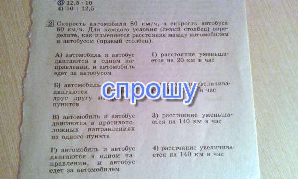 Г 3, лично мое мнение 80+60= 140 по автобус едет за автомобилем, разница между ними 20 км/ч если по логике, они же куда то едут Так что уменьшается. Если бы надо было расстояние между ними тогда другая история, надеюсь помог. Удачи.