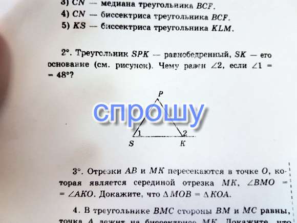 Так как треугольник равнобедренный, то угол SKP=lt;1