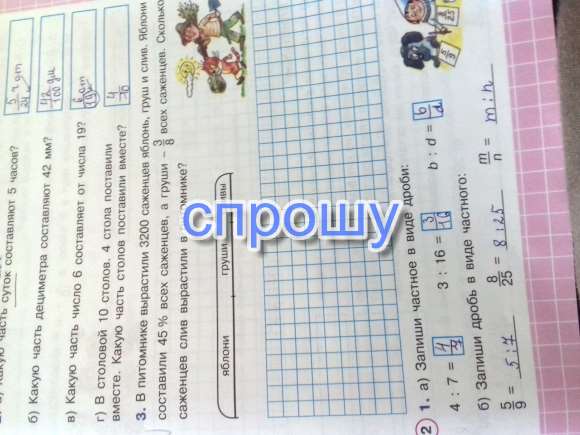 В питомнике выросли 3200 саженцев яблонь,груш и слив.Яблони составили 45пронцентов всех саженцев,а груши -3-8 всех саженцев. Сколько саженцев слив вырастили в пиьлм