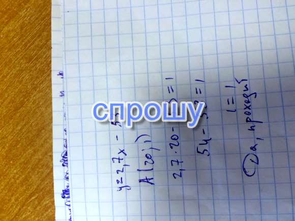 Не вополняя построения графика функции у = 2,7х-53, ответьте на вопрос: проходит ли график функции через точку А(20;1)