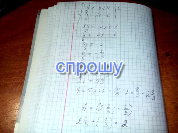 Найдите сумму координат точки А, если известно, что эта точка является точкой пересечения графиков функций у = -х+4 и у = 2х-6