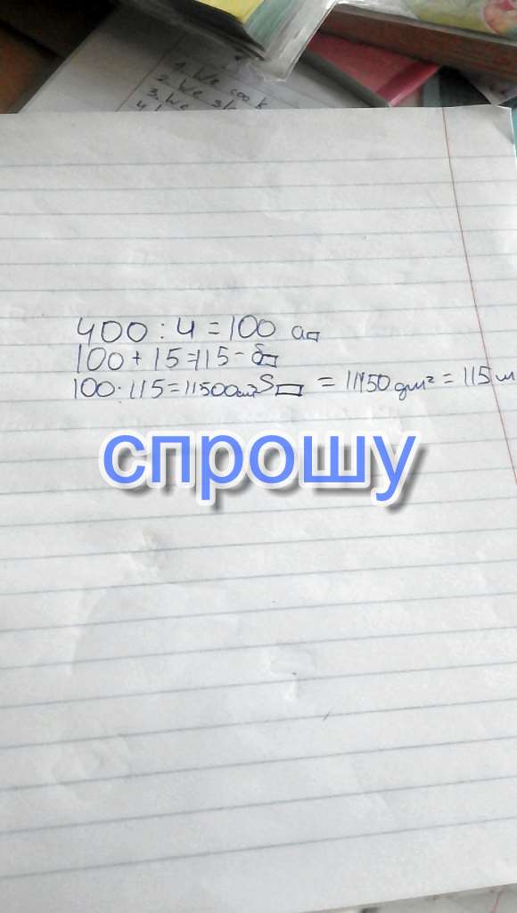 Площадь квадрата 400 сантиметров квадрате Найдите площадь такого прямоугольника ширина которого равна стороне квадрата а длина на 15 сантиметров больше Вырази площадь прямоугольника в более крупных единицах