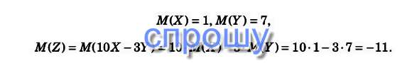 Случайная величина Х имеет математическое ожидание 1, а У имеет математическое ожидание 7. Найдите математическое ожидание случайной величины Z = 10Х-3У