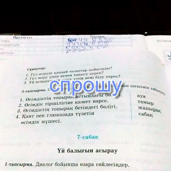1)вопрос. ответ ТАМЫР.2)вопрос. САБАҚ 3)ЖАПЫРАҚ 4)АУА