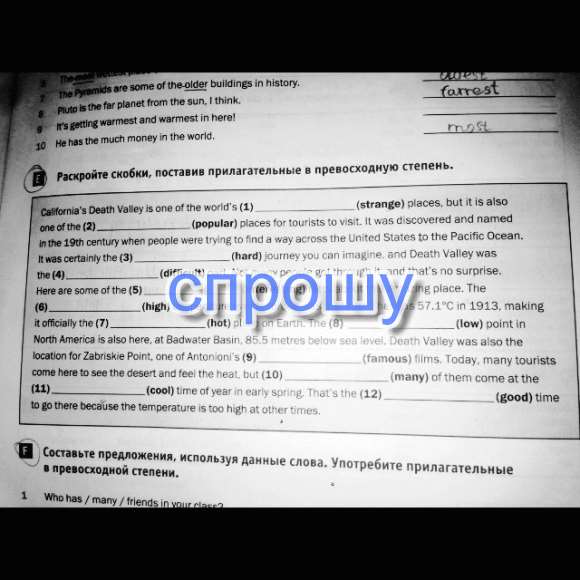 Раскройте скобки, поставив прилагательные в превосходную степень.