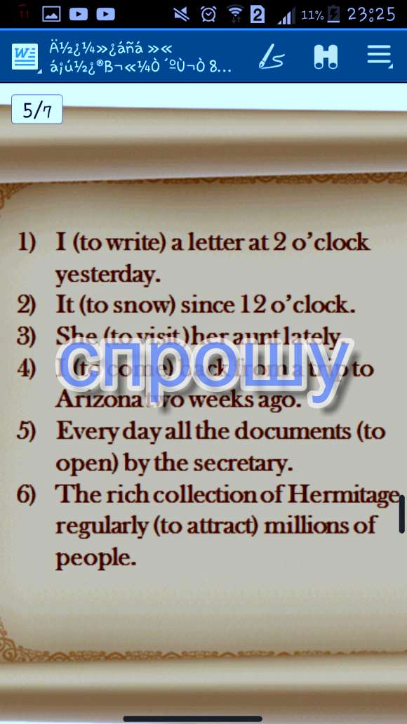 Г 1 was writing, 2 has been snowing, 3 has visited, 4 came, 5 are opened, 6 attracts