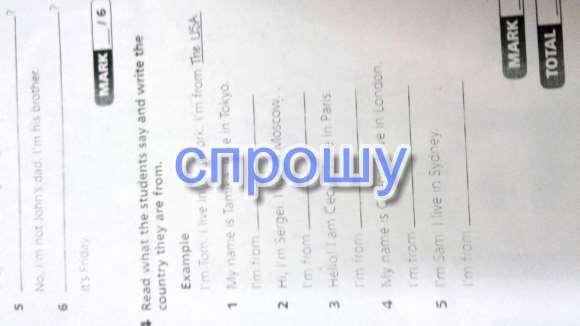 1) Im from Japane 2) Im from Russia 3) Im from France 4) Im from Great Britain 5) Im from Australia