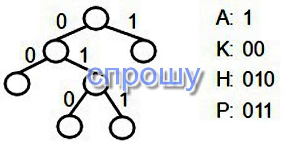 По каналу связи передаются сообщения, содержащие только 4 буквы К, Р, А, Н; для передачи используется двоичный код, допускающий однозначное декодирование. Для букв К, А, Н используются такие кодовые слова: К: 00, А: 1, Н: 010. Укажите кратчайшее кодовое слово для буквы Р, при котором код будет допускать однозначное декодирование. Если таких кодов несколько, укажите код с наименьшим числовым значением.