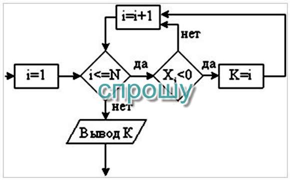 Задан одномерный массив X1, X2, …,XN . Фрагмент алгоритма определяет