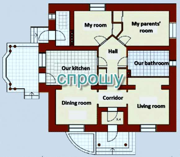 Если вы пройдете прямо, то увидите мою комнату и спальню моих родителей. Моя