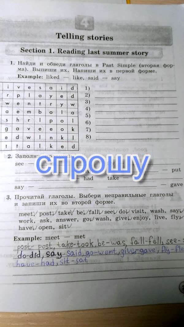 Номер 1 go went got get have had walk walked say said give gave номер 2 see saw go went have had say said put put give gave take took fly flew