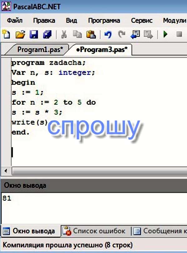 В паскале дописали слово программа и название, запустили на исполнение и получили 81. Если нужно найти результат без программы, то просто нарисуй таблицу и заполняй ее