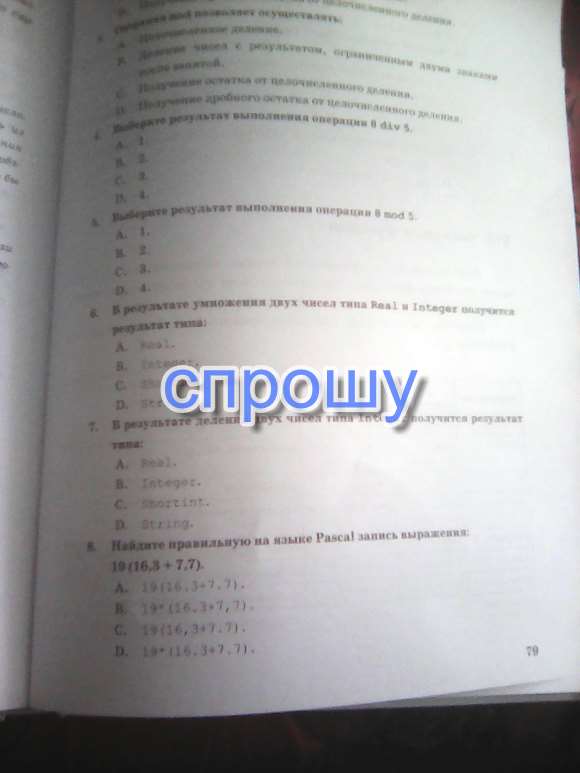 4. Плохо видно. Вроде 8 div 5 тогда целое от деления 8 на 5 = 1.